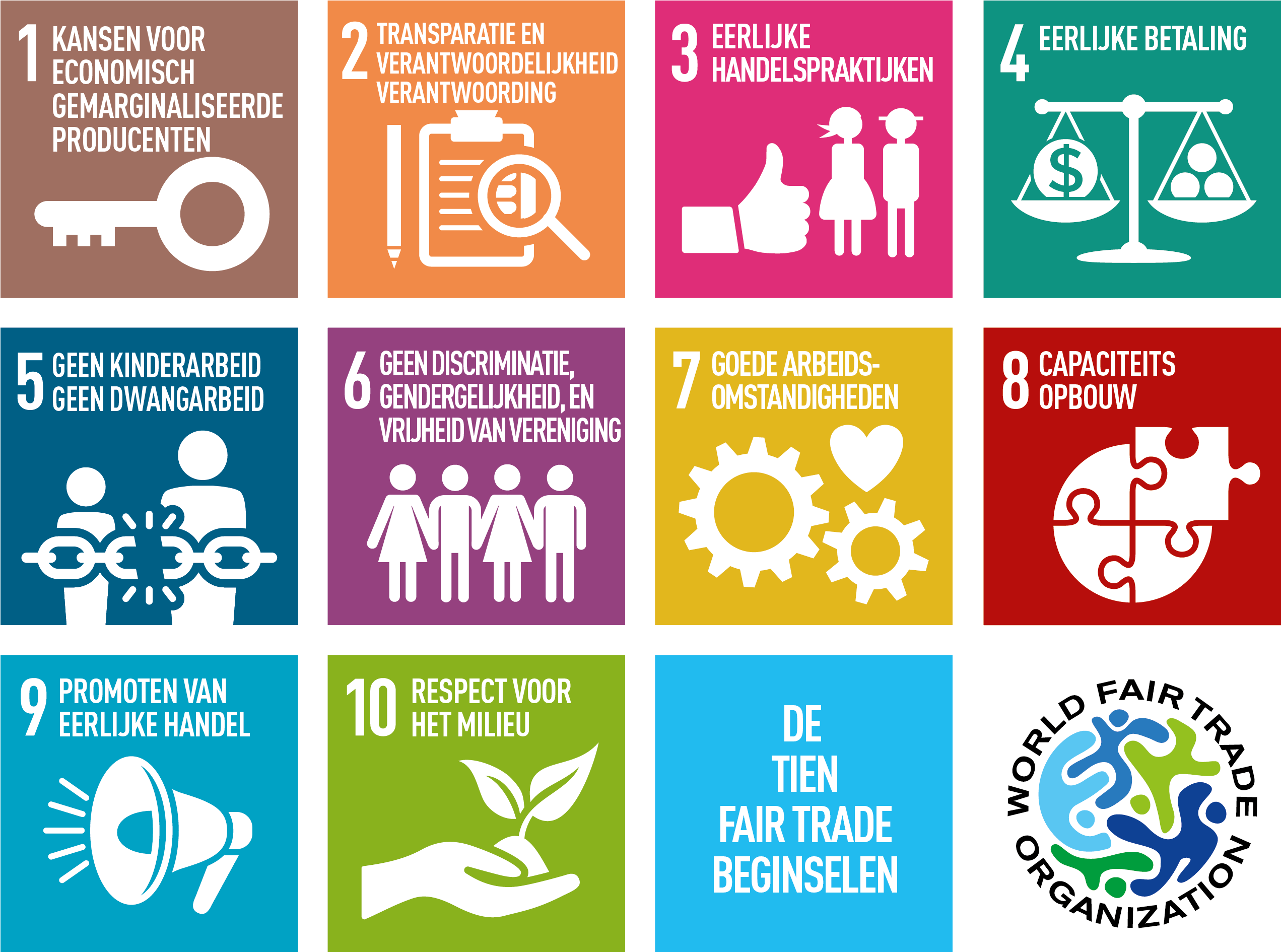 Wereldwinkels zijn zelfstandige organisaties die gerund worden door vrijwilligers. Zij volgen de 10 criteria van de World Fair Trade Organisatie (WFTO). Zo ondersteunen zij de SDG’s (Sustainable Development Goals) 1, 8 en 12 van de Verenigde Naties.